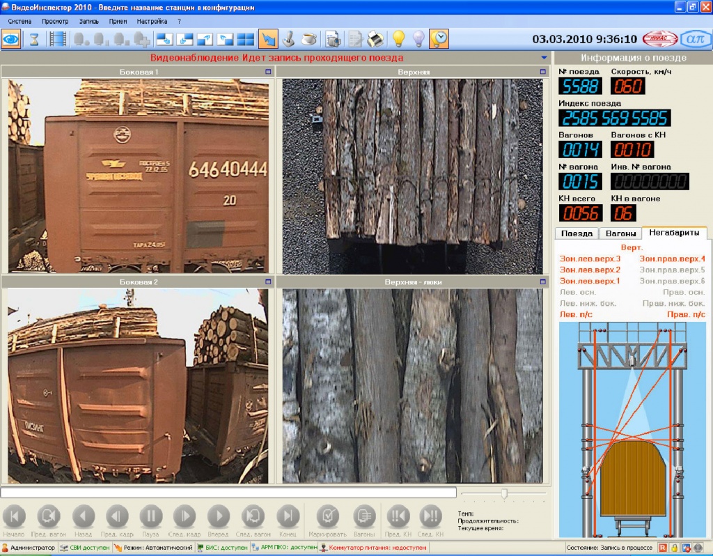 Как в процессе прохождения поезда, так и при просмотре видеозаписи оператор имеет возможность визуально контролировать состояния крыш и бортов вагонов поезда, люков цистерн, а также крепления грузов на открытых вагонах. Выявленные негабариты отображаются на экране монитора АРМ О ПКО и протоколируются с привязкой к порядковому номеру вагона.